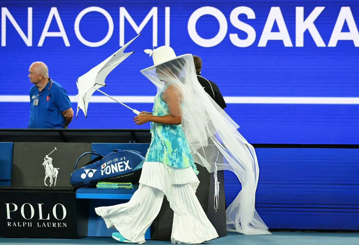 不过,比大坂直美的比赛更引人注目的是她的出场造型。一身纯白战袍搭配类似头纱的装饰,迅速引爆了社交媒体。